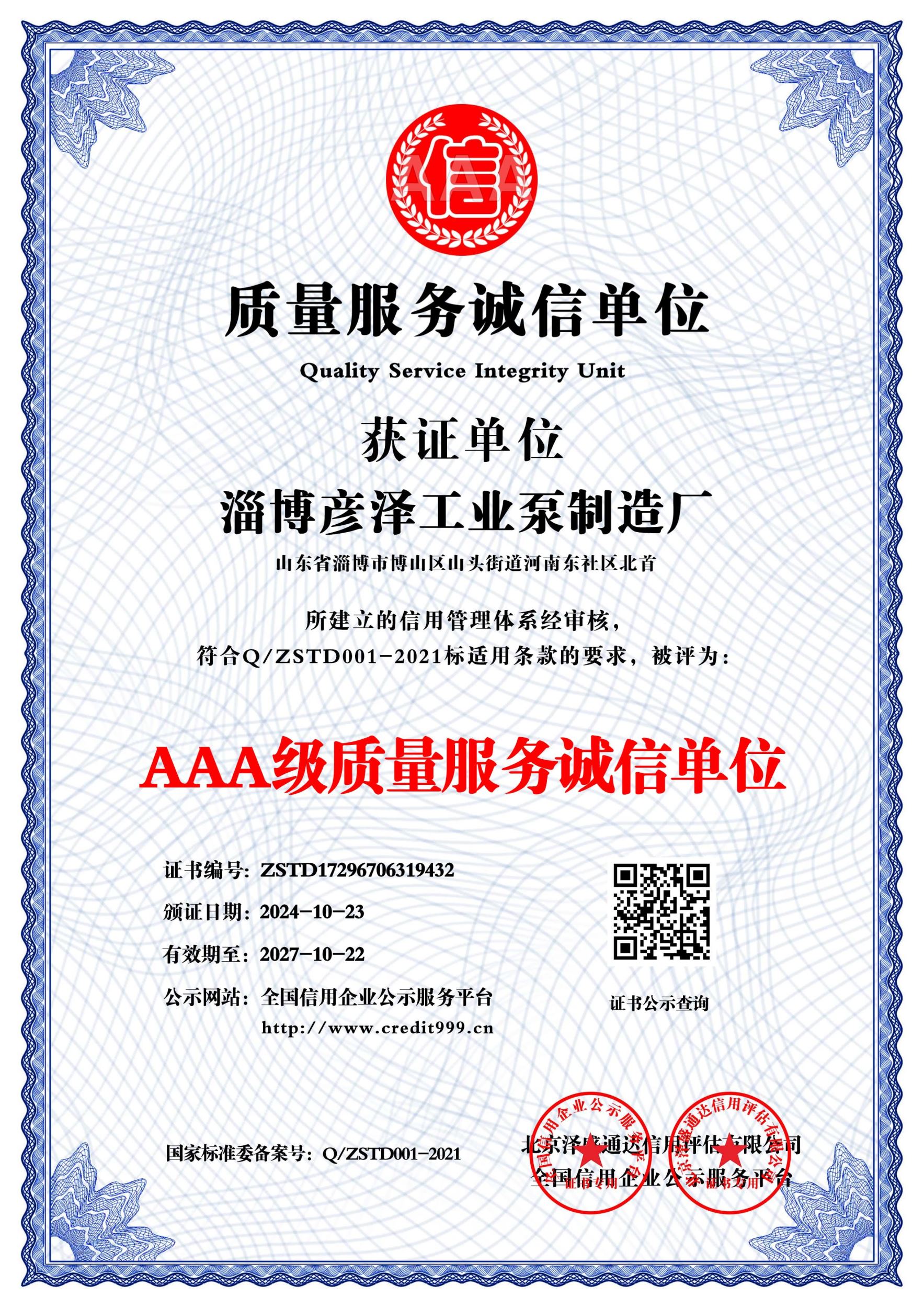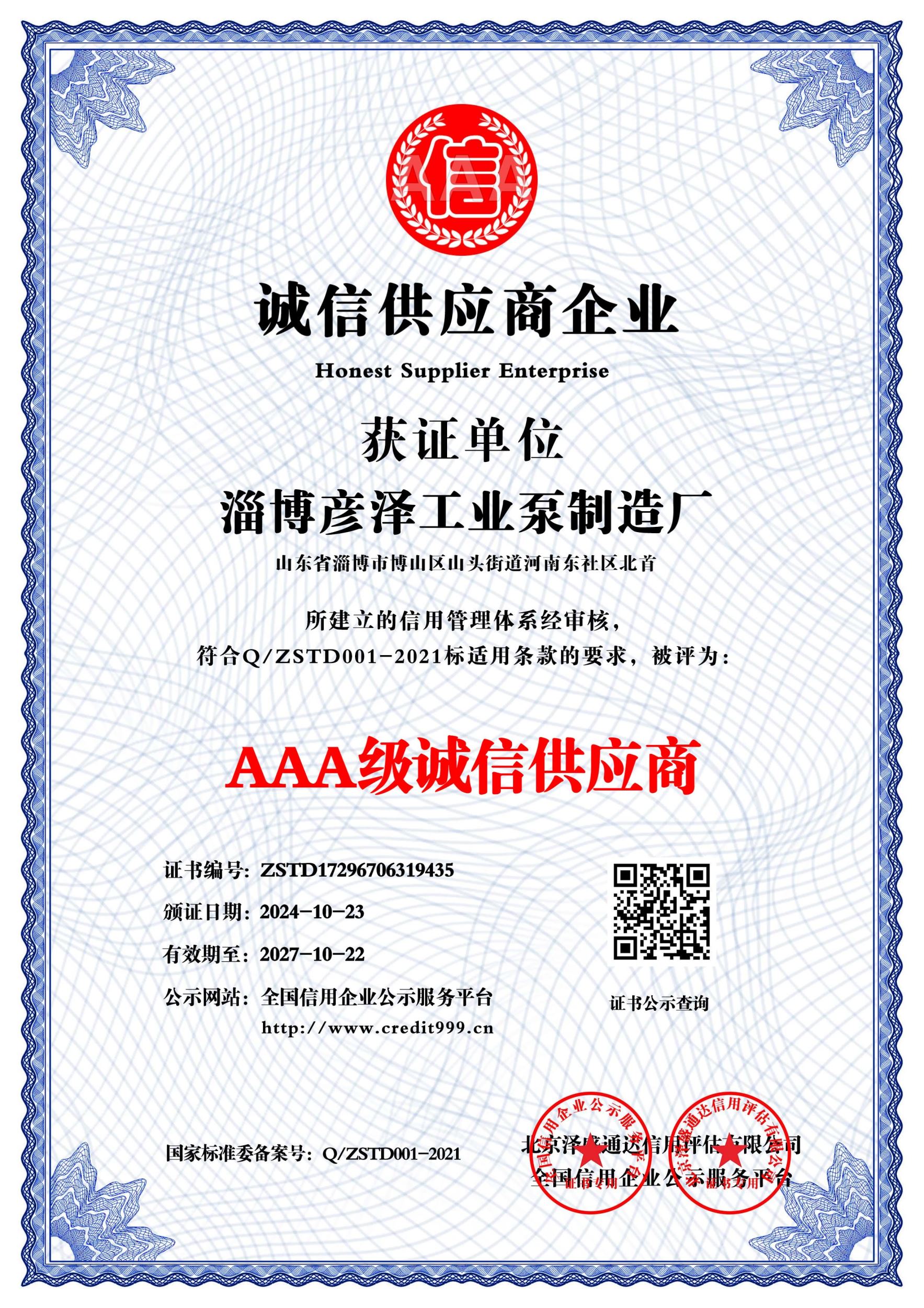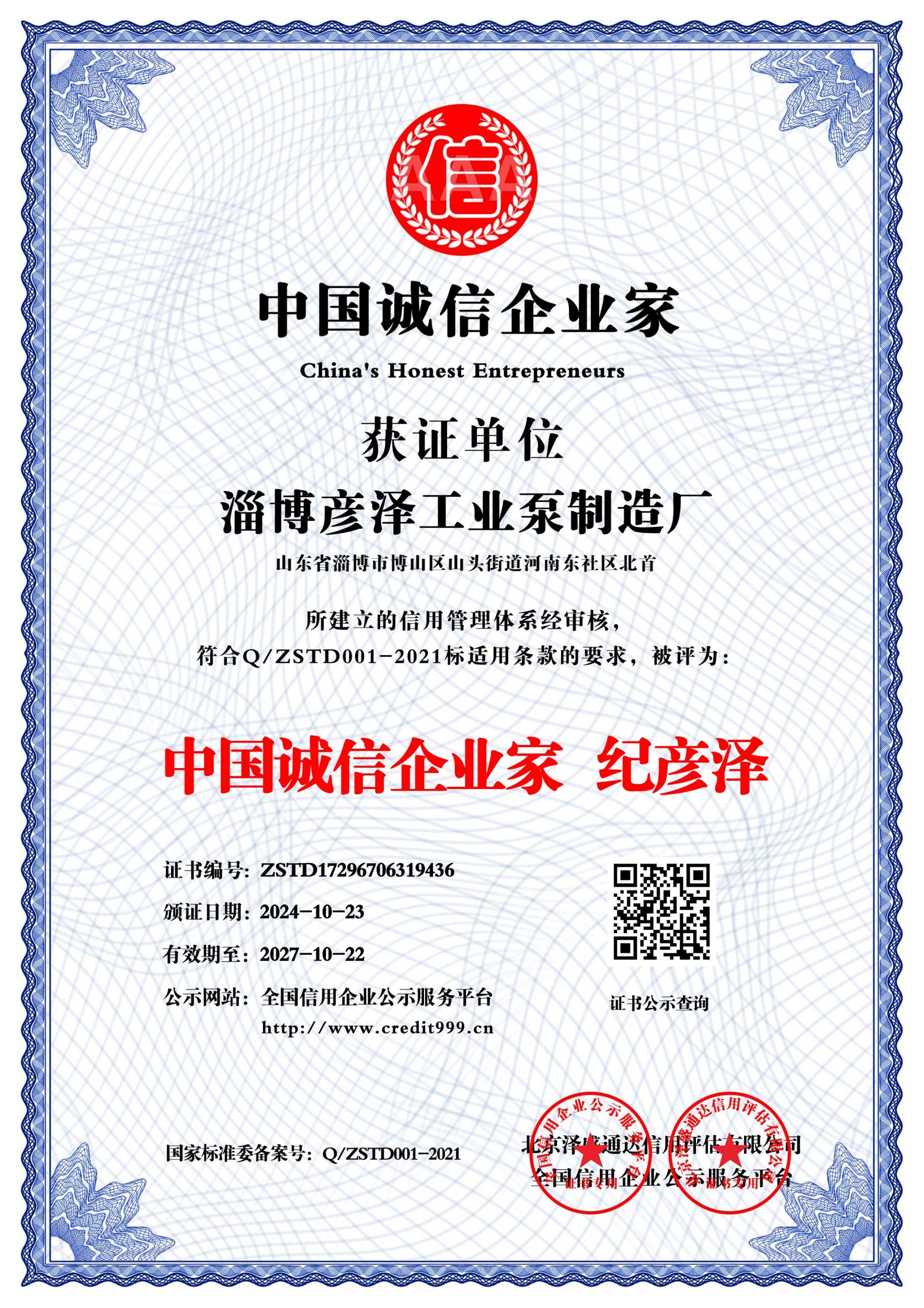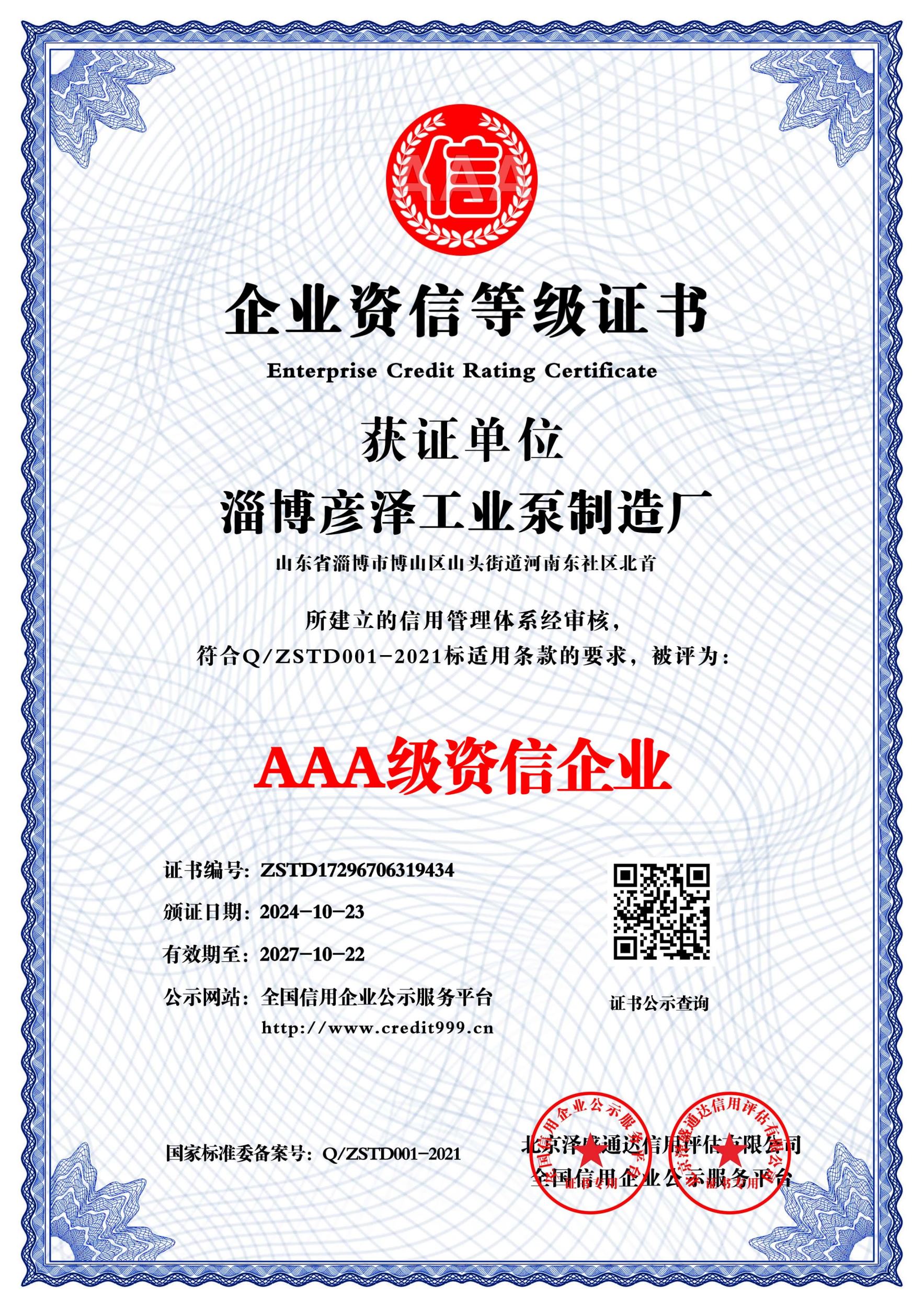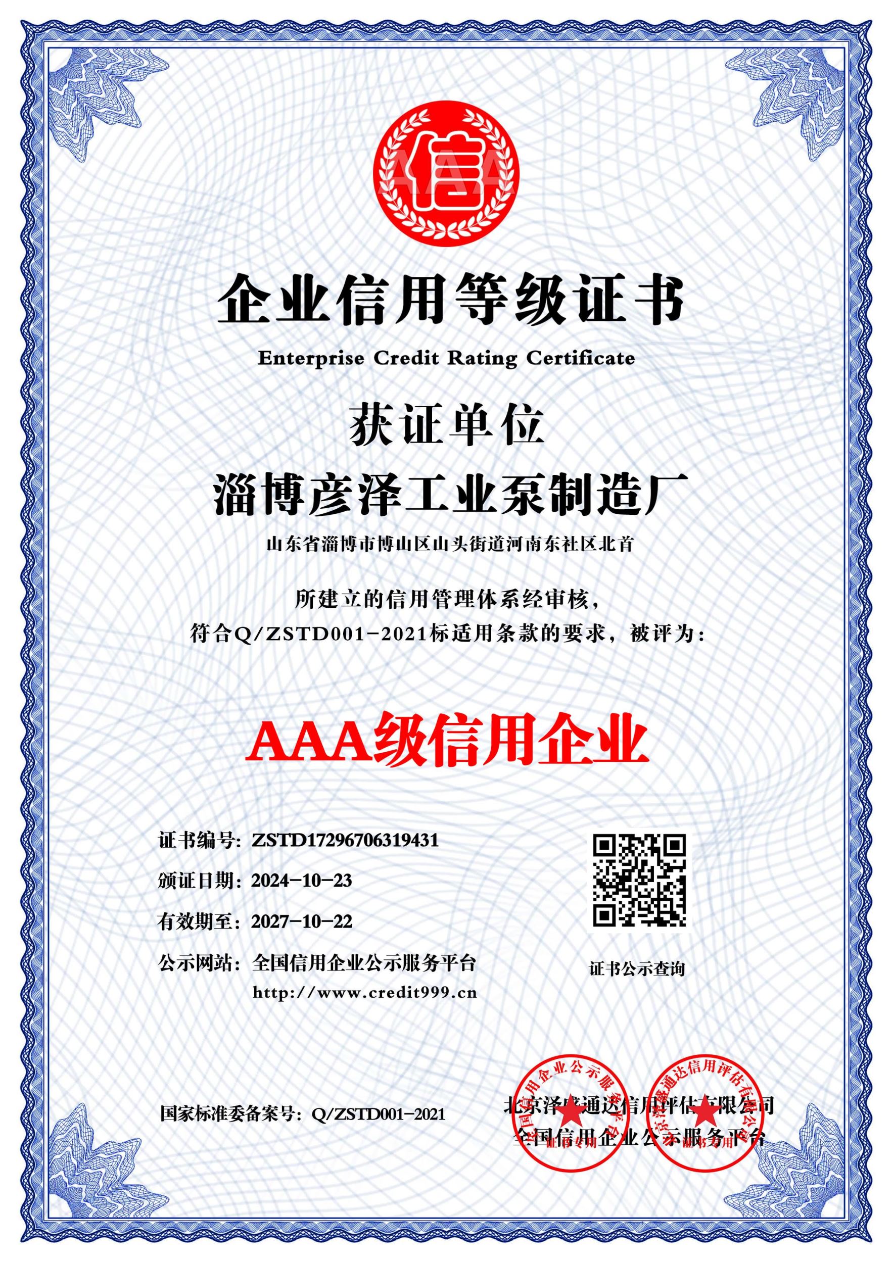 信用报告_淄博彦泽工业泵制造厂